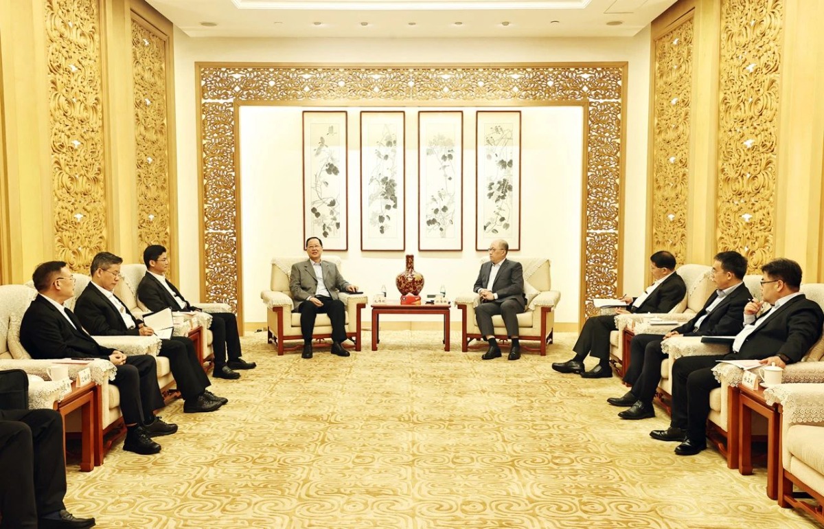5月13日上午,毛伟明与中央政府驻港联络办主任郑雁雄座谈