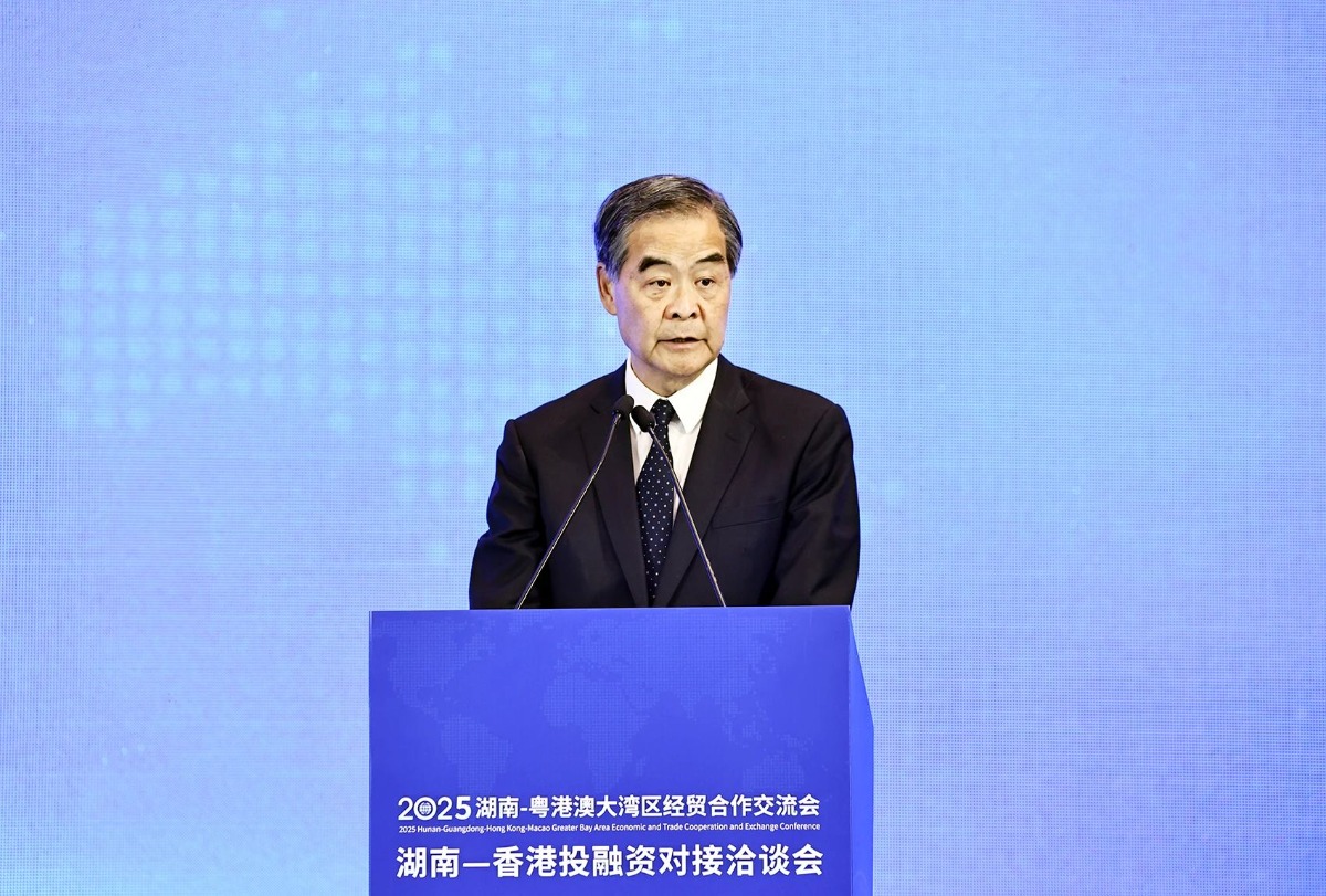 “纵山河远阔,难隔一脉同源;虽千里迢迢,不改携手初心。”毛伟明在致辞中说,长期以来,作为湖南境外第一大贸易伙伴、境外融资第一选择地、入境游第一大客源地,香港在湘投资达241亿美元、占湖南利用外资的67%,两地进出口额连续6年超500亿元,供港农产品70%左右来自湖南,仅去年就有43万香港游客来湘打卡。湖南与香港有着广阔的合作空间,希望双方以更紧密的协作推动科产融合,以更高效的联通促进资本融合,以更开阔的视野加强贸易融合,以更便利的举措深化文旅融合,以更多的新途径新方式,绘就合作共赢新图景。
