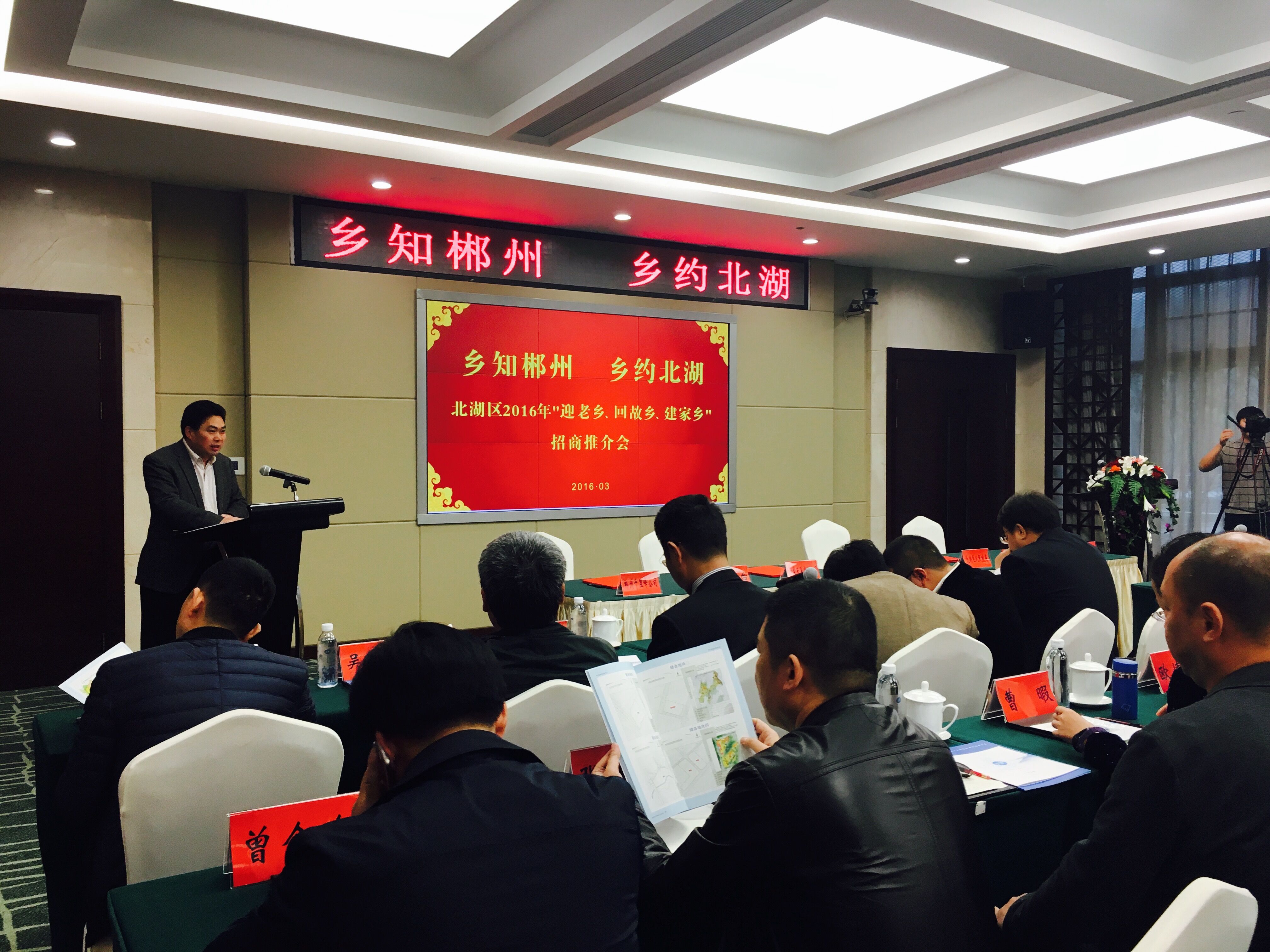 3月29日,北湖区举办“乡知郴州乡约北湖——迎老乡、回故乡、建家乡”招商对接会,邀请了郴州异地商会会员、在外郴商、在郴异地商会、在北湖区有投资项目或有明确投资意向的客商共30多人参加。