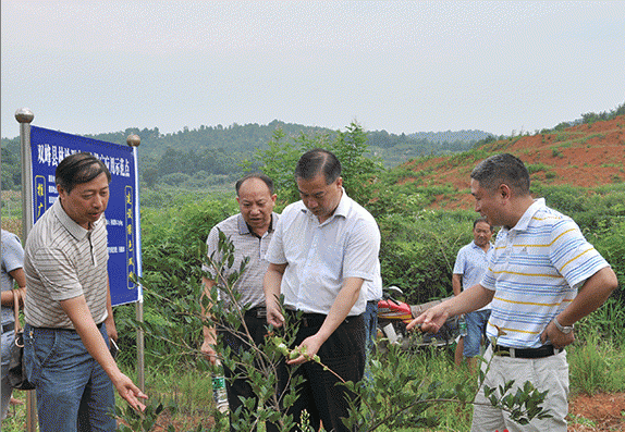 在梓门桥镇土桥村的油茶林基地,杨维察看了油茶树的长势。杨维要求,林业等相关部门要加强油茶林的种植技术指导,充分利用土地资源,开发林下经济,套种花生、西瓜等作物,增加土地肥力。