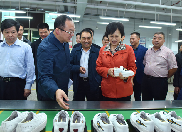 黄兰香首先来到兴昂鞋业,就台资企业经济运行情况进行调研。她深入成品鞋、鞋面、鞋材、大底胶装等车间边走边看,听取企业负责同志的汇报,详细询问鞋厂的生产经营情况,了解企业发展过程中存在的困难和问题。兴昂鞋业主要生产世界知名品牌BROWN,ASH女鞋,出口欧美市场,1—9月生产成品鞋165万双,进出口额2500万美元,解决就业2400余人。