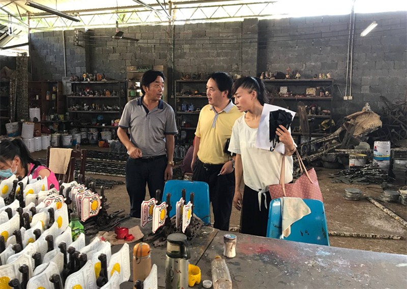 8月17日下午,市商务局局长石元云带领对外贸易合作股相关工作人员走访调研了吉首市银颜雕塑工艺品有限公司、湘西华方制药有限公司、湖南木洋华丰贸易有限责任公司等外贸企业。