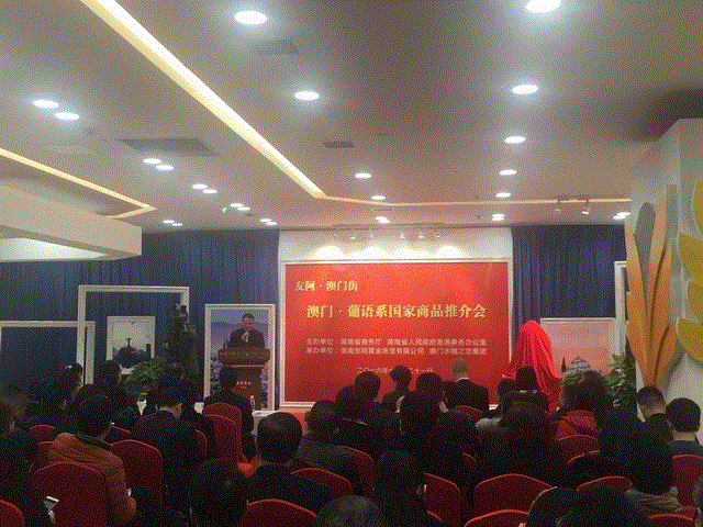 为贯彻落实省第十一次党代会提出的“创新引领,开放崛起”发展战略,充分发挥澳门“一中心一平台”的独特作用,深化湖南与澳门及葡语系国家的经贸合作,我厅与省港澳办于12月21日在长沙举办澳门及葡语系国家商品推介会,并举行澳门水精之恋集团与我省友阿集团旗下的黄金珠宝有限公司合作经营的“友阿·澳门街”揭幕仪式。