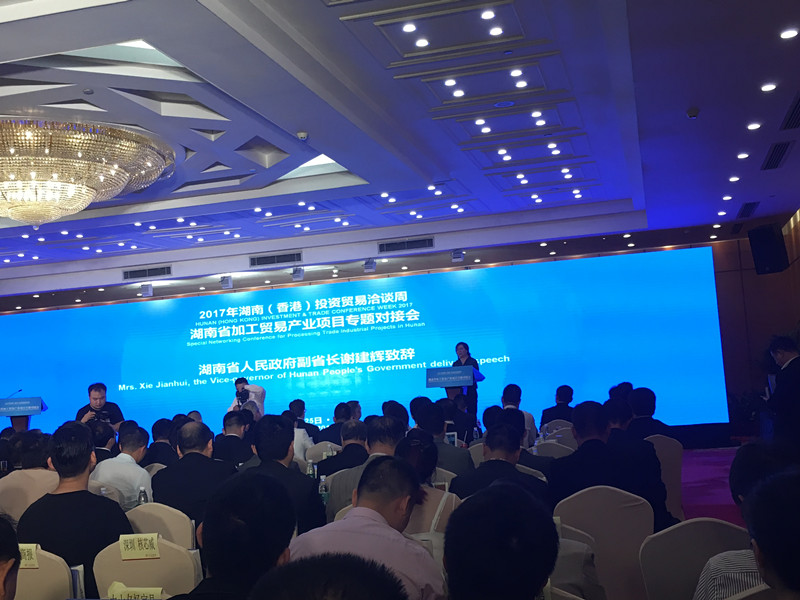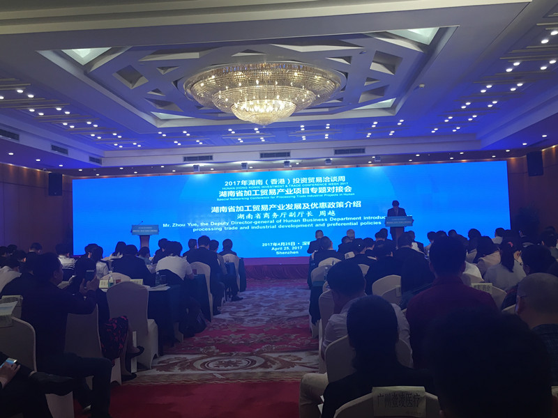 4月25日上午,湖南省加工贸易产业项目专题对接会在深圳五洲宾馆隆重举行。此次加工贸易产业项目专题对接会由湖南省人民政府主办,我厅和湘潭市政府联合承办。省政府副省长谢建辉、省政府副秘书长黎咸兴,省商务厅副厅长周越,湘潭市委书记曹炯芳以及省市有关部门负责人和100多位中外重要客商参加会议。
