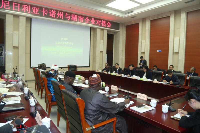 会上,徐湘平厅长首先介绍了我省基本情况,优势产业和湘非经贸合作情况等。萨努希阁下则表达了愿与湖南省开展经贸合作的强烈愿望,欢迎湖南政府和企业赴卡诺州考察。随后,尼日利亚卡诺州投资局、湖南建工集团、远大住工及中地海外等单位的代表先后在会上做推介演讲。