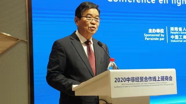 12月17日下午,由湖南省人民政府和中国工商银行共同主办的2020中非经贸合作线上磋商会在长沙高桥大市场举办。商务部副部长钱克明以视频方式致辞,省政府副省长何报翔出席会议并致辞,省政府副秘书长陈献春出席会议,我厅李心球副厅长在会上作推介发言。