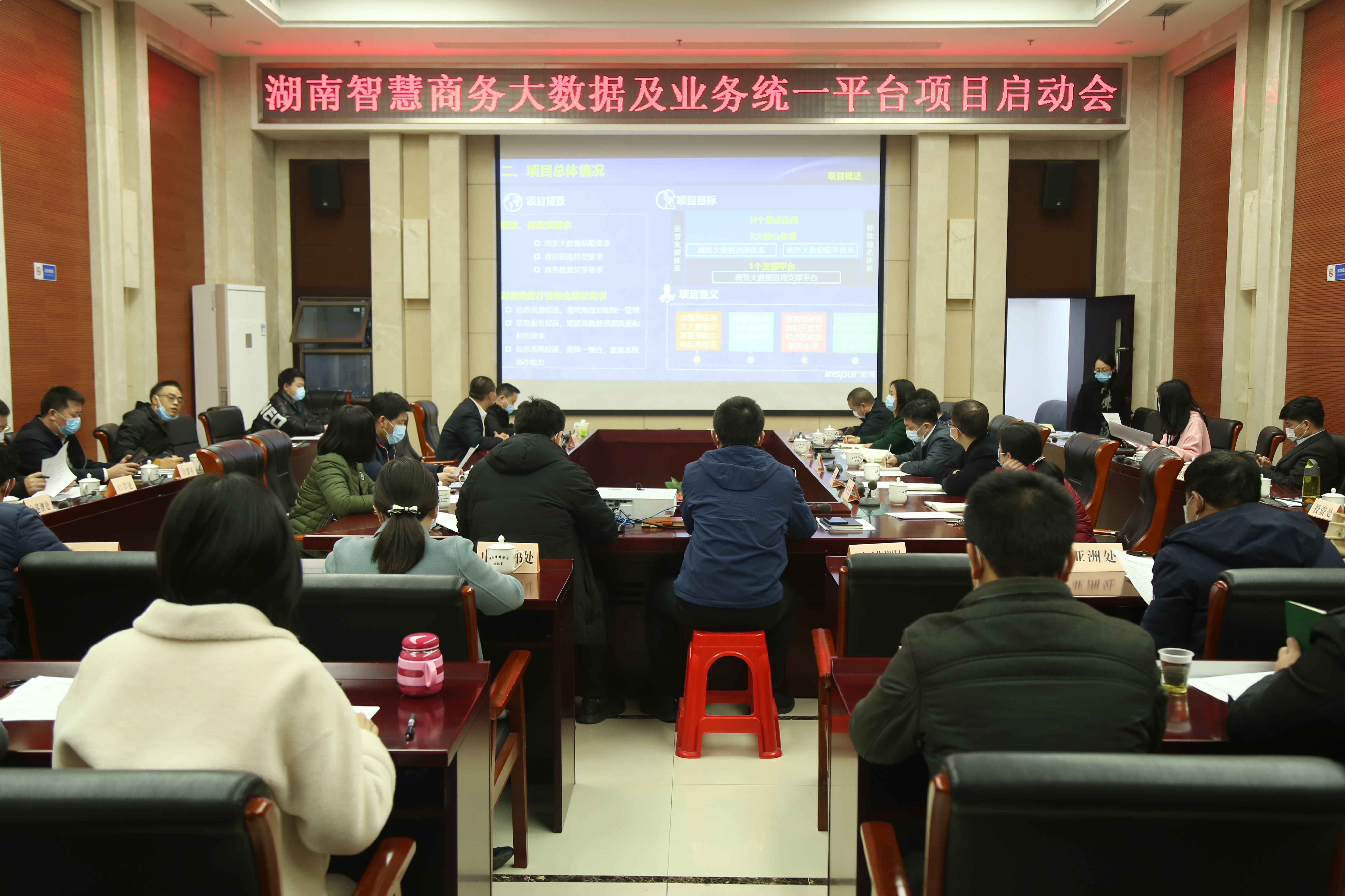 1月15日,罗双锋一级巡视员主持召开湖南智慧商务大数据及业务统一平台项目(以下简称智慧商务项目)启动会。厅机关各相关处室(中心)主要负责人、商务服务中心相关负责人、智慧商务项目主体部分承建单位、各子系统建设单位、厅自建系统建设运维单位以及监理单位代表参加会议。