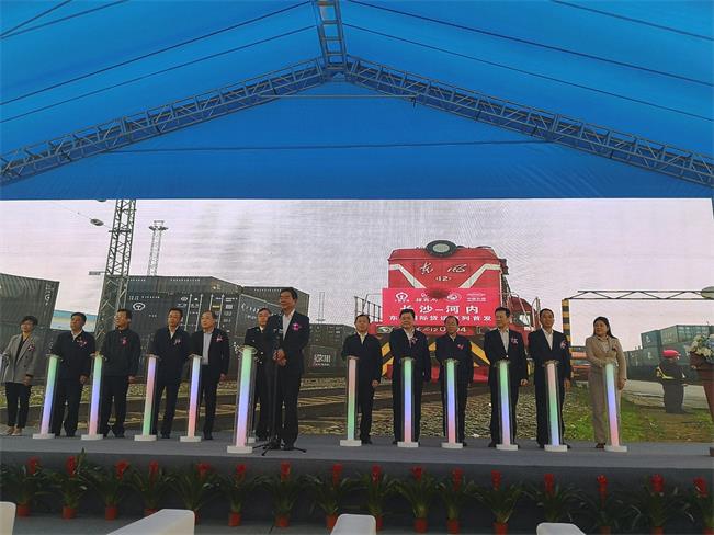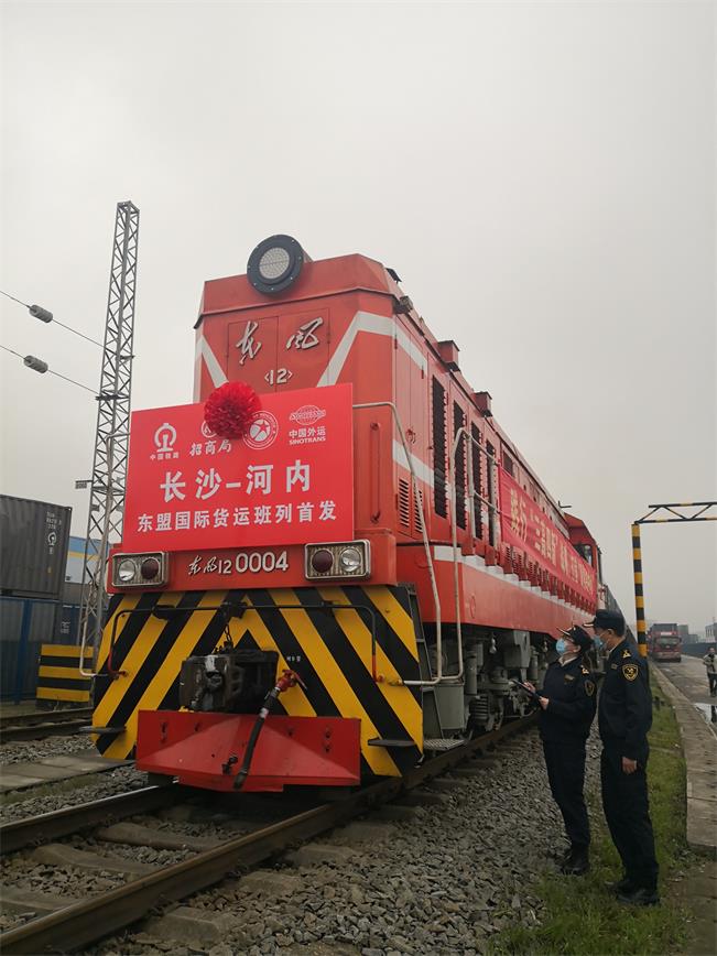 3月31日上午8:58,伴随着嘹亮的汽笛声,满载82个标准集装箱的东盟国际货运班列从长沙国际铁路港出发,预计7天后到达越南河内。省人民政府副省长何报翔宣布发车,省人民政府副秘书长陈献春、省商务厅副厅长杨中万等参加首发仪式。