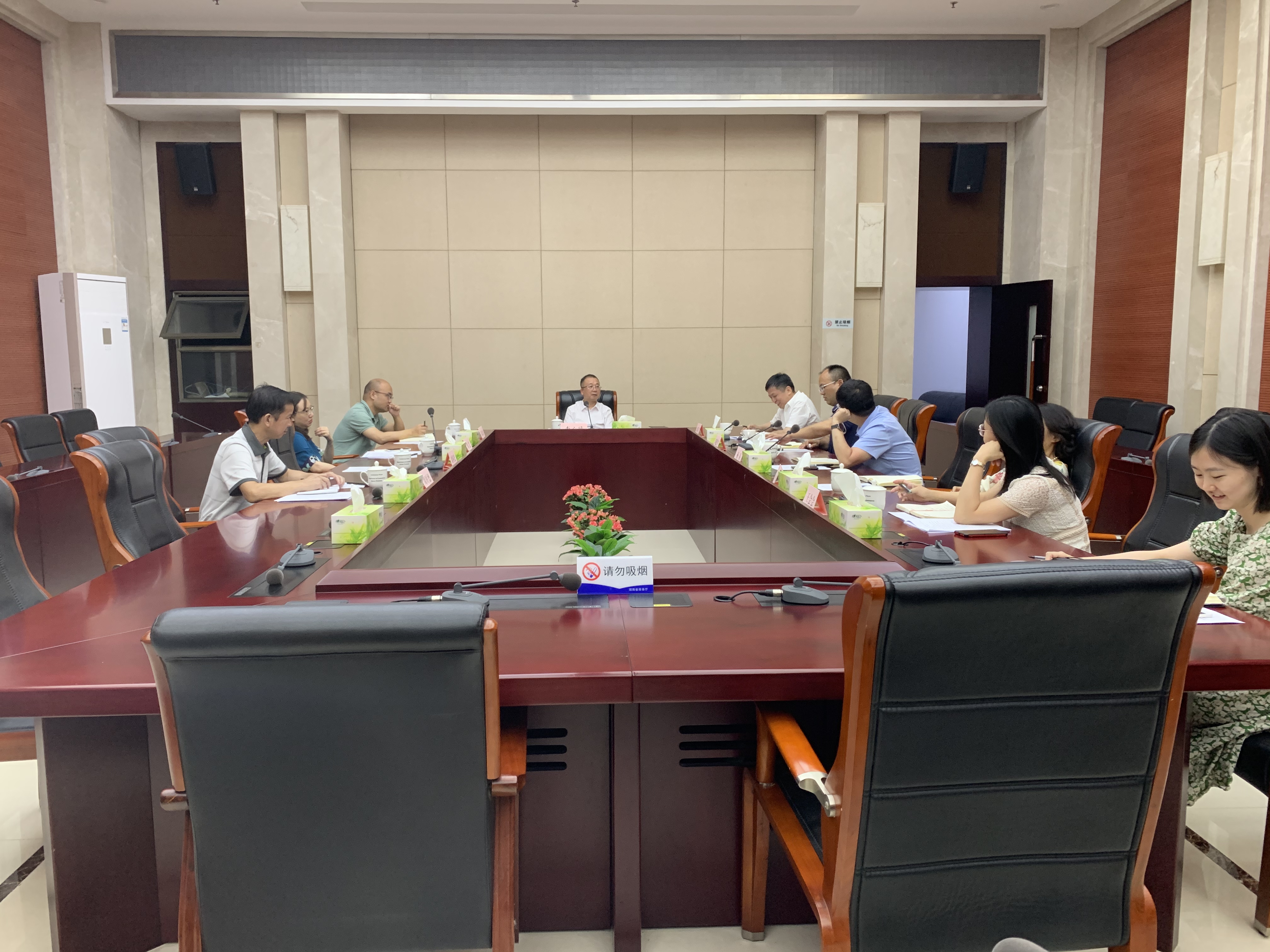 6月7日下午,省商务厅副厅长李心球主持召开第二届中非经贸博览会新闻宣传工作调度会。商务厅筹备办新闻宣传部全体成员、综合协调部总值班室、展览展示部、专题活动部和省委宣传部有关同志参会。
