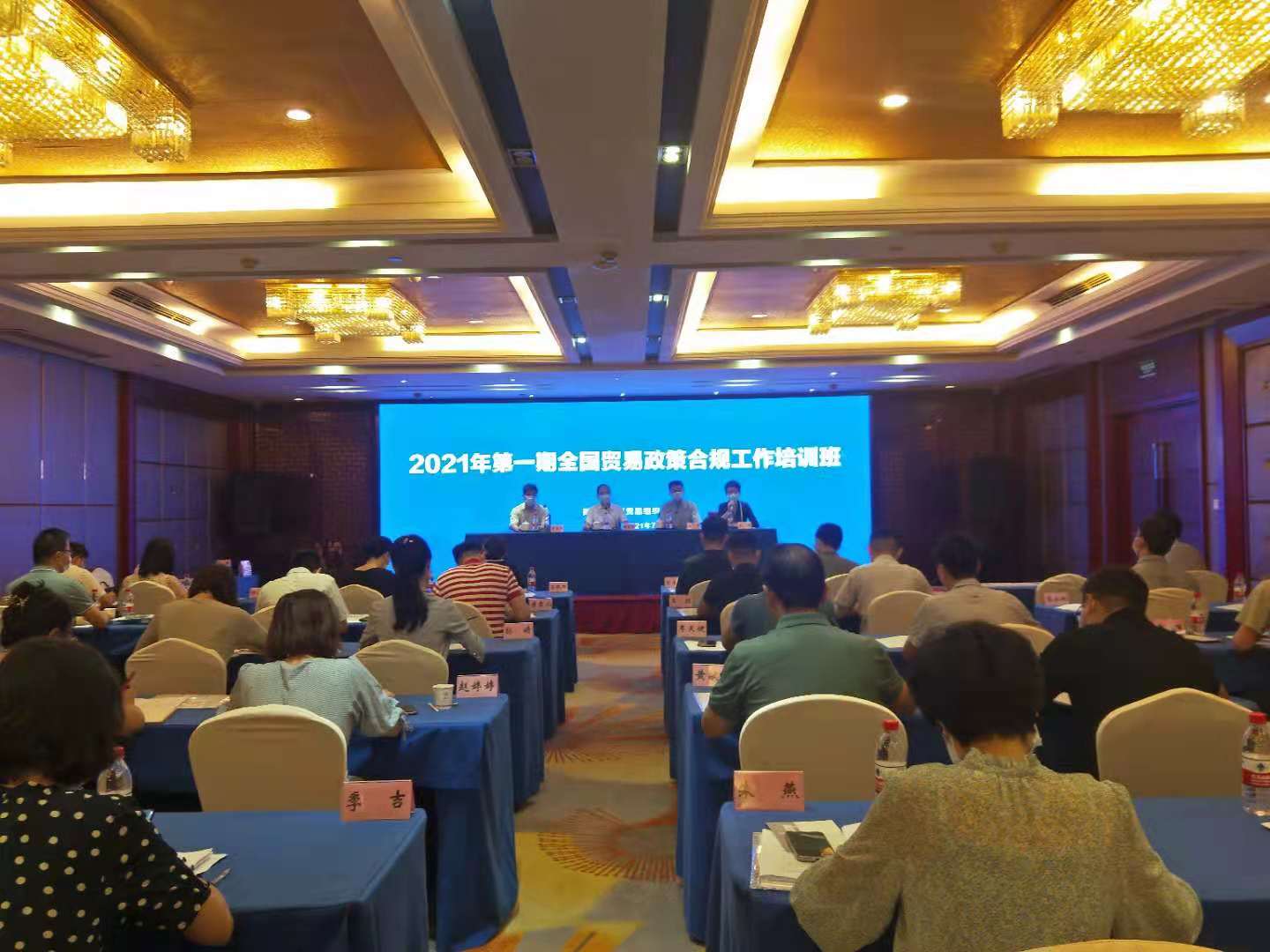 7月26日至28日,2021年第一期全国贸易政策合规工作培训班在长沙举行。本次培训由商务部世贸司主办,我厅加工贸易处具体协办,来自全国22个中央部委、31个省(市、自治区、直辖市)商务主管部门、6个商务部驻地方特派员办事处负责世贸组织相关工作的71名同志参加培训。世贸司谈判副专员汪震出席开班仪式并讲话,我厅二级巡视员楼良金致欢迎辞,厅加工贸易处、外贸处等相关负责同志参加培训或调研。