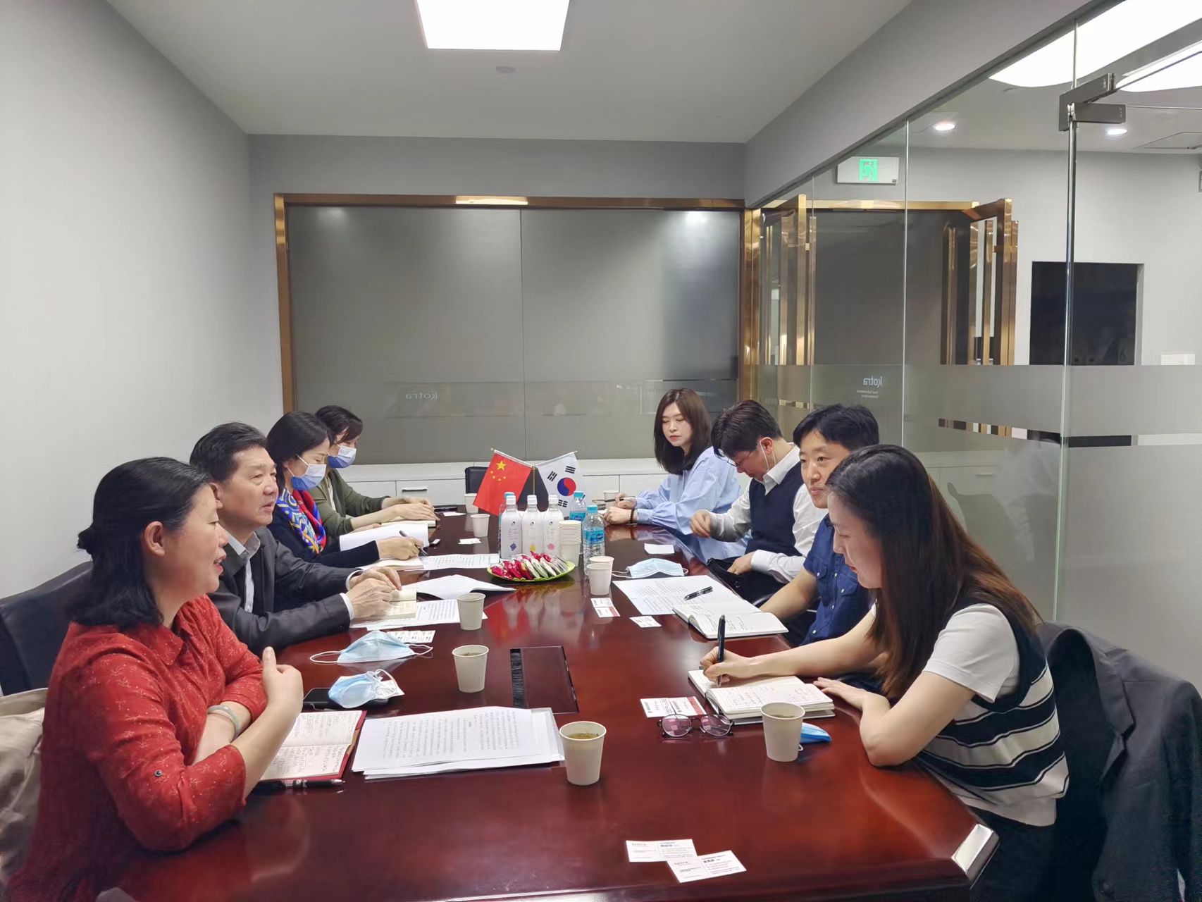 调研组一行听取了金昊俊馆长对促进湖南与韩国在贸易投资方面合作的意见建议,听取了在湘韩资企业对我省贸易投资环境建设方面的意见,与代表处相关负责人就双方在建立信息交流机制、相关合作推进机制、重点合作领域等方面进行了充分沟通和交流。