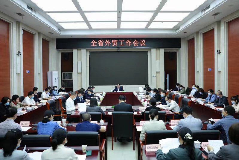 5月10日下午,省商务厅厅长沈裕谋主持召开全省外贸工作会议,副厅长周越、厅二级巡视员杨明伟、省财政厅、省外汇管理局、长沙海关、省税务局、进出口银行、中国银行、出口信保公司相关部门负责人和厅财务处、电商处、外贸处、加贸处、自贸评估处、口岸物流处、口岸处及14个市州商务主管部门主要负责同志参会。