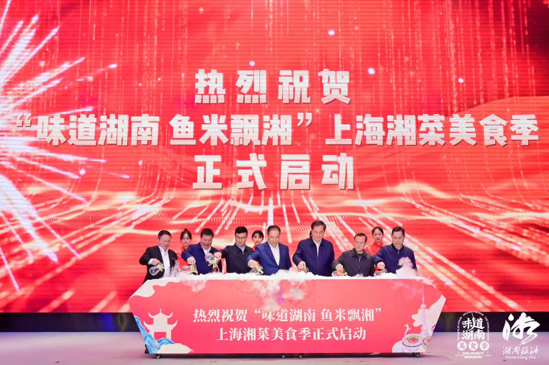 11月6日下午,由湖南省商务厅、湖南省粮食和物资储备局、湖南省人民政府驻上海办事处联合主办,省商务服务中心、湖南异地商会联合会、上海市湖南商会、上海湘菜协会共同承办的2022味道湖南美食季“味道湖南 鱼米飘湘”上海专场活动在浦东新区东方万国宴会中心举行。湖南省商务厅一级巡视员毛七星、湖南省自贸办专职副主任廖光辉出席。