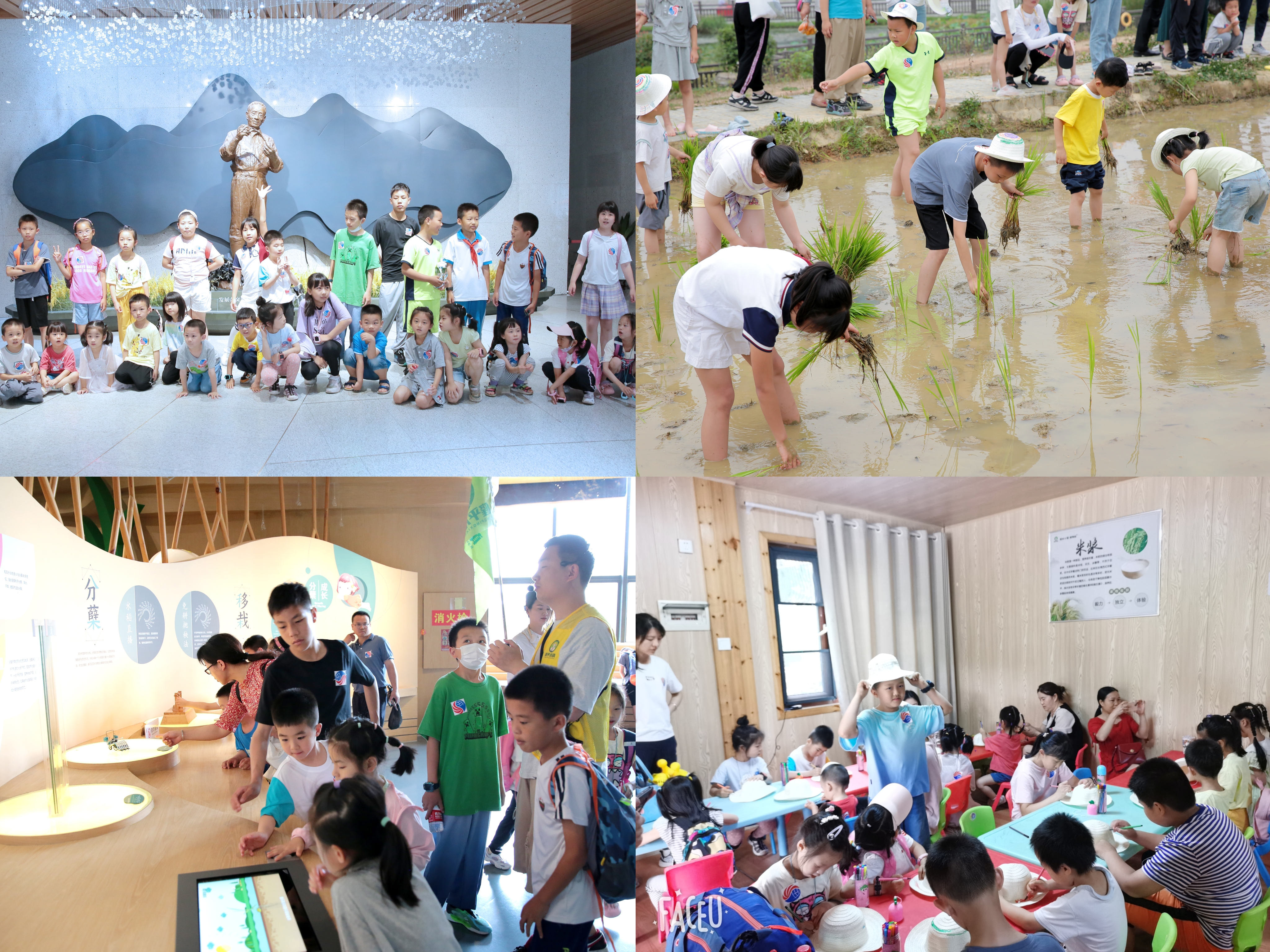 主题活动专门为孩子们设置了手工制作和田间劳作亲子趣味活动环节,在隆平文化博物馆水稻田中,孩子们进行“人勤不负好春光、小小农夫插秧忙”插秧比赛,感受农耕文化的独特魅力,以劳树德、以劳增智、以劳强体、以劳育美。