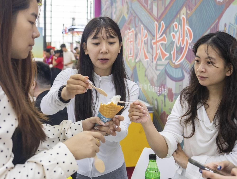 9月19日,在长沙国际会展中心,观众在品尝冰淇淋。 新华社记者 陈思汗 摄