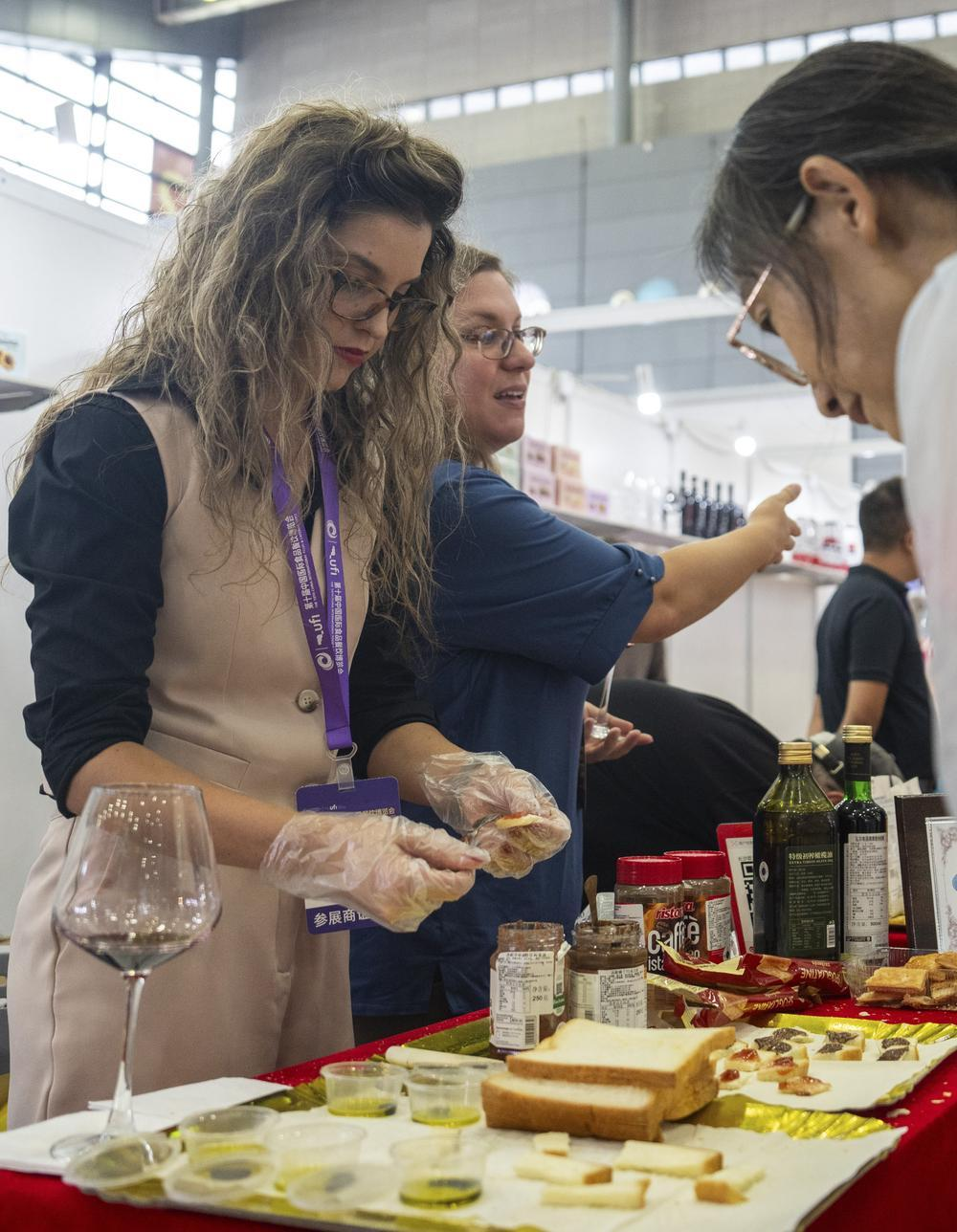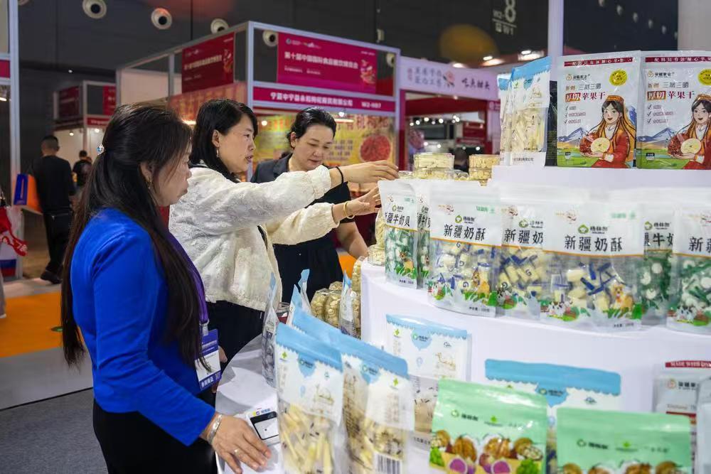 9月19日,在长沙国际会展中心,观众(中)在了解展出的奶制品。 新华社记者 陈思汗 摄