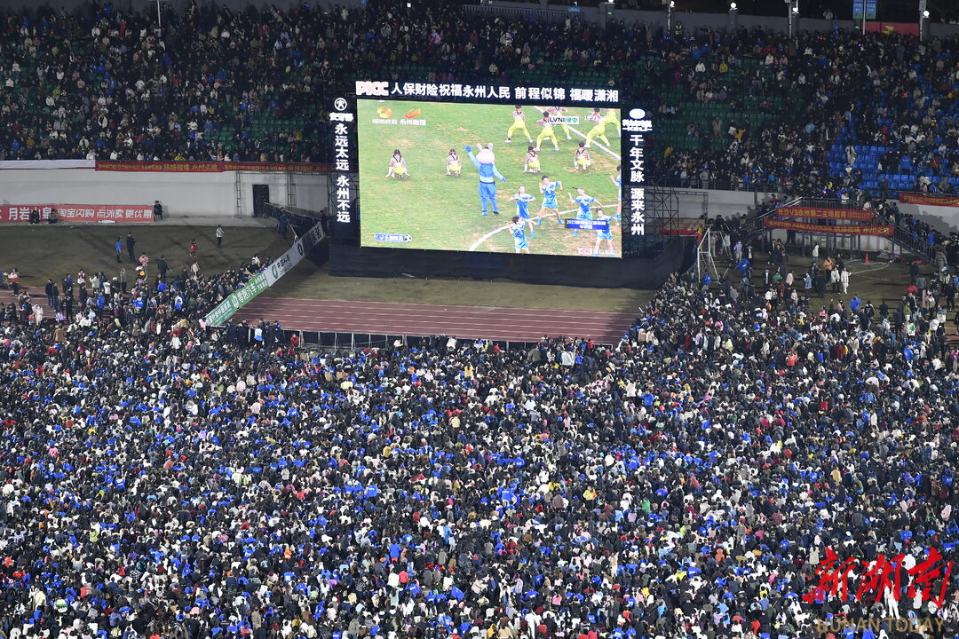 12月20日晚,永州市体育场,数万市民齐聚永州市体育场,为远征客场的家乡球队加油助威,“第二主场”汇成蓝色海洋。湖南日报全媒体记者 童迪 摄