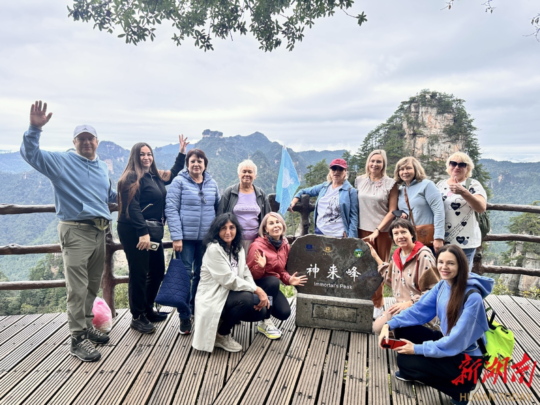 10月14日,俄罗斯游客在张家界国家森林公园黄石寨景区游玩留影。吴勇兵 易鹏飞 摄(湖南图片库)