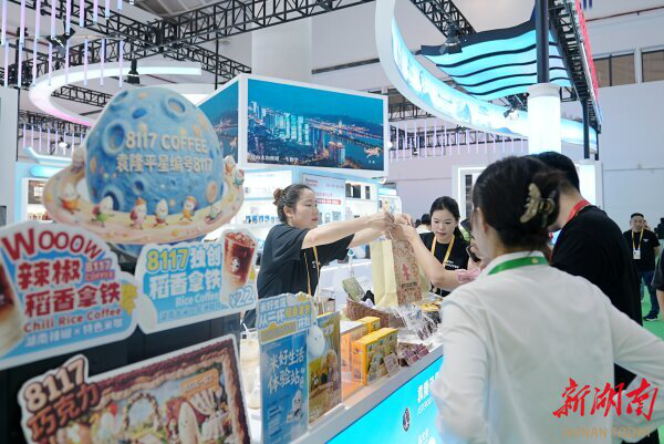 湖南形象馆设置开放湖南、制造湖南、科创湖南、传承湖南、味道湖南五大特色展区,精品荟萃。“镇馆之宝”醴陵釉下五彩瓷国礼花瓶,以非遗烧制工艺融合现代设计,尽显湖湘工艺精髓;“人气爆款”安化黑茶文创礼盒,兼具饮用与收藏价值,成为文旅消费热门之选;木偶戏活灵活现,展示湖湘优秀传统文化传承;消费电子、湘绣、湘瓷、湘茶、湘酒等“专、精、特、新”消费精品,绽放湘品魅力。