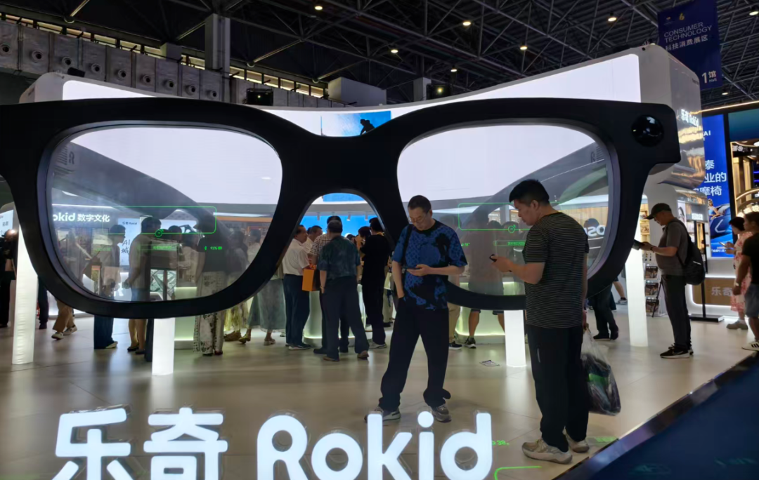 乐奇Rokid展台上展示的AI眼镜重量仅49克,支持拍照录像、语言翻译、实时导航、AI问答、“看一眼支付”等功能。