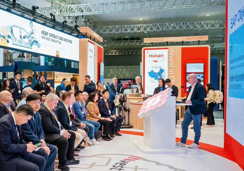 今年展会的主题为“以技术洞见产业未来”,聚焦工业人工智能(AI)、机器人技术等前沿领域,出席“湖南机会”活动的中外嘉宾纷纷围绕这一主题在专题演讲环节进行分享交流。全球领先的企业管理解决方案供应商思爱普(SAP)全球业务及供应链管理高级总监马拉齐·马丁以“人工智能驱动制造与供应链协同:让流程互联,让数据可信”为题进行了介绍;国际知名的检测认证机构南德意志集团电气安全与工业电子业务总监托尔斯滕·拉姆则围绕欧盟市场合规作了介绍。