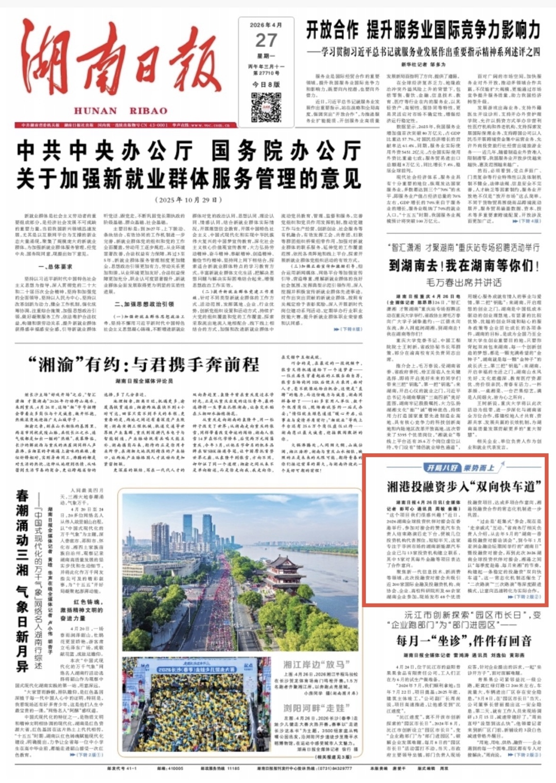 香港是湖南最大的外资来源地和主要贸易伙伴。去年10月,香港专设“内地企业出海专班”,为湖南企业提供从法律到品牌的一站式护航。“高频次、深层次的互动,让两地合作从单一活动升级为可持续的生态体系。”香港特区政府投资推广署助理署长李淑菁介绍。