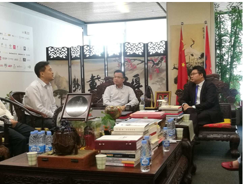 小分队首先来到世界500强企业正威集团洽谈合作事宜。双方就建立民俗非遗博览园、建立长期互访机制、开展委托招商等方面深入广泛交换意见,形成了合作方案。