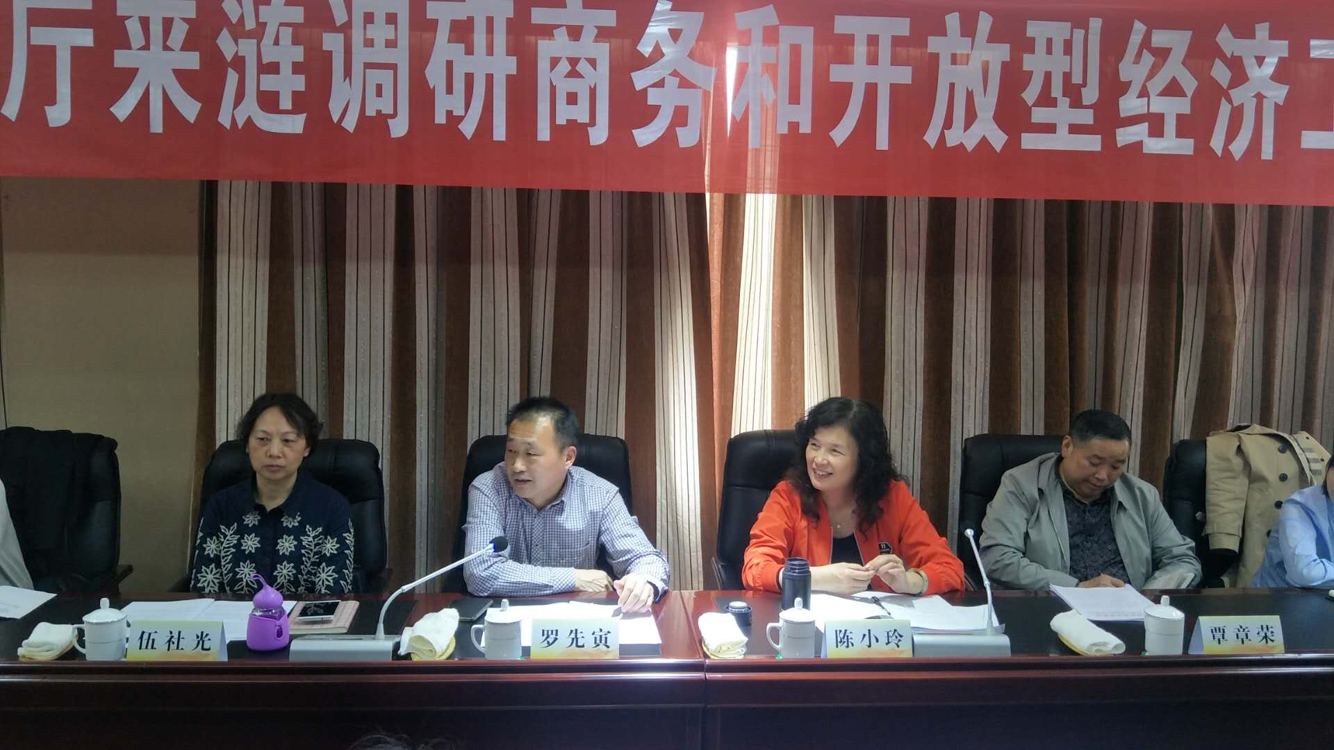 4月10日,省商务厅服务贸易和商贸服务业处调研员罗先寅率领调研组一行4人,在娄底市商务粮食局副局长覃章荣、涟源市人民政府副市长李冰玉的陪同下,对涟源市的商务和开放型经济工作开展为期半天的调研。