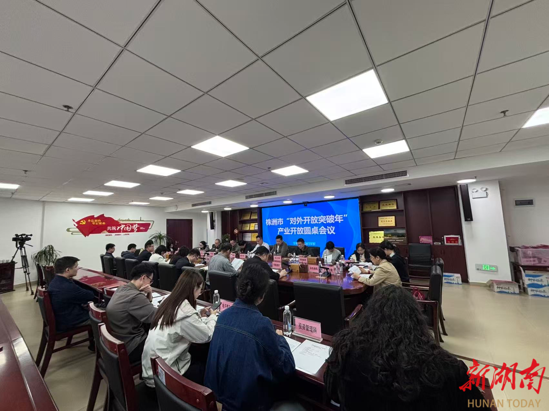 4月28日,株洲市商务局组织召开“对外开放突破年”产业开放圆桌会议。相关部门负责人与企业代表面对面交流,共商产业开放大计。株洲市商务局党组书记、局长杨志华出席,株洲市商务局党组成员、副局长周方旺主持。