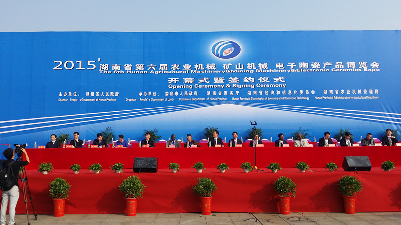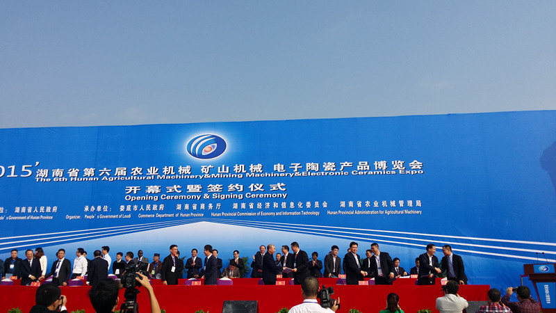 农业机械、矿山机械、电子陶瓷产品博览会是湖南省人民政府主办,娄底市人民政府、省商务厅、省经信委、省农机局共同承办的重要展会,已经成功举办五届。今年第六届博览会展览面积25000余平方米,设置标准展位326余个,分农业机械、矿山机械及智能制造、电子陶瓷、名优特产品、电子商务五个展区。参展企业达700家,包括土耳其及非洲等6家境外企业,新疆、四川、宁夏、广东等45家省外参展企业。参展产品逾万个,全面展示了农业机械、矿山机械、电子陶瓷等产业领域的新产品、新技术、新设备、新成果。本届博览会共签订投资项目60个,总投资246.02亿元,签订贸易合同142个,贸易总金额29.5亿元。
