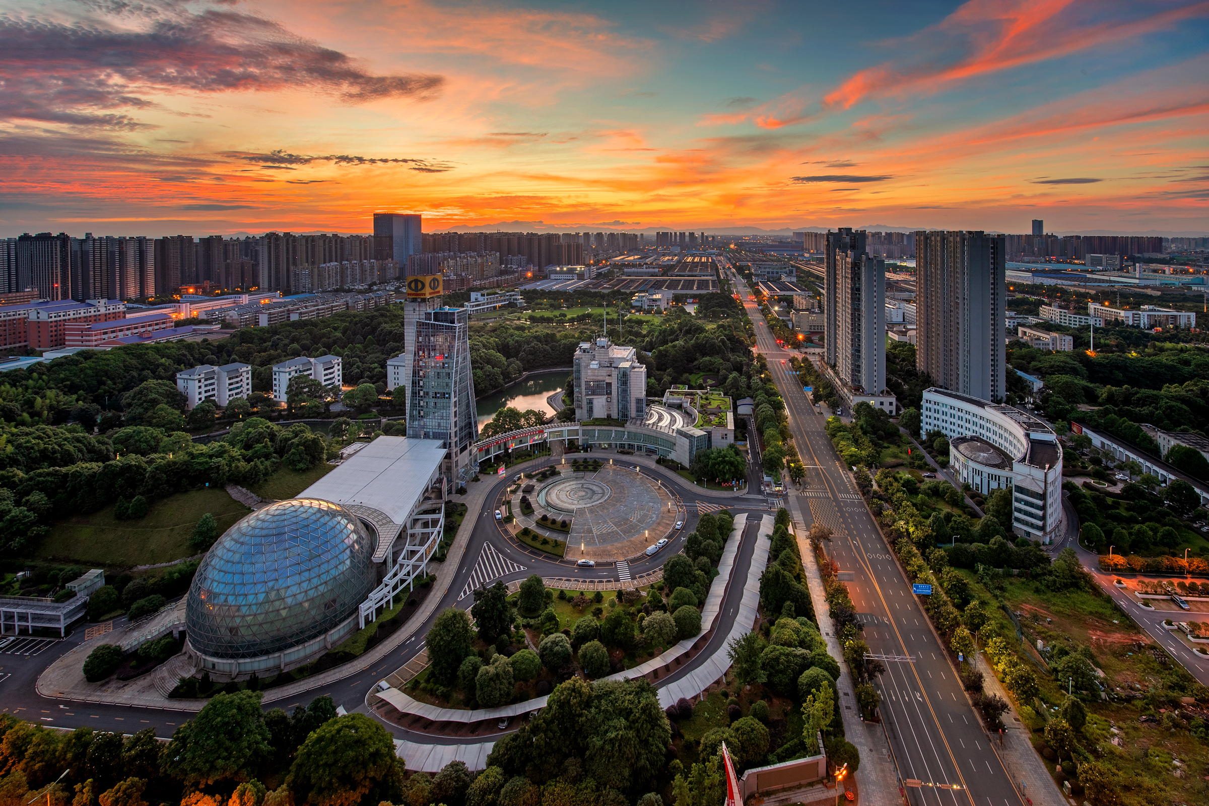 晚霞中的长沙经开区办公大楼,展示其磅礴的力量。