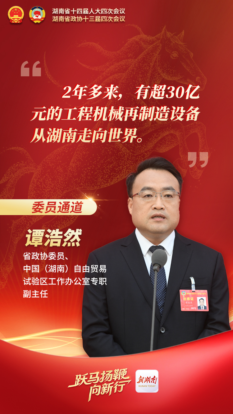 “得益于这些举措,2年多来,有超30亿元的再制造设备从湖南走向世界,曾经的‘堰塞湖’变成了产业出海的‘新航道’。”谭浩然说。