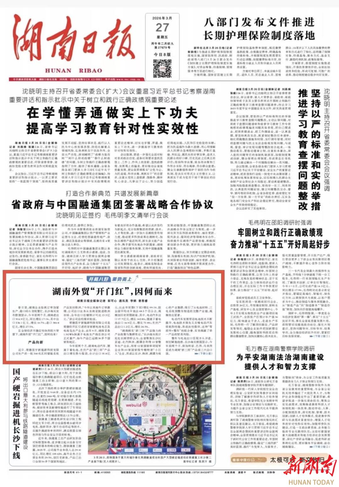 3月12日,2026年“湘贸全球”服务优化年专项行动在邵阳启动。同时,省商务厅联合多部门印发《湖南省“湘贸全球”服务优化年行动方案》,聚焦外贸企业全生命周期、全链条发展需求,推出“拓展政策信息服务、扩大产业协同服务、优化企业拓市服务、便捷口岸通道服务、扩大金融赋能服务、夯实保障支撑服务、赋能外贸综合服务、筑牢行业协会服务、深耕外贸人才服务”九大硬核服务举措,全方位赋能湘品出海。