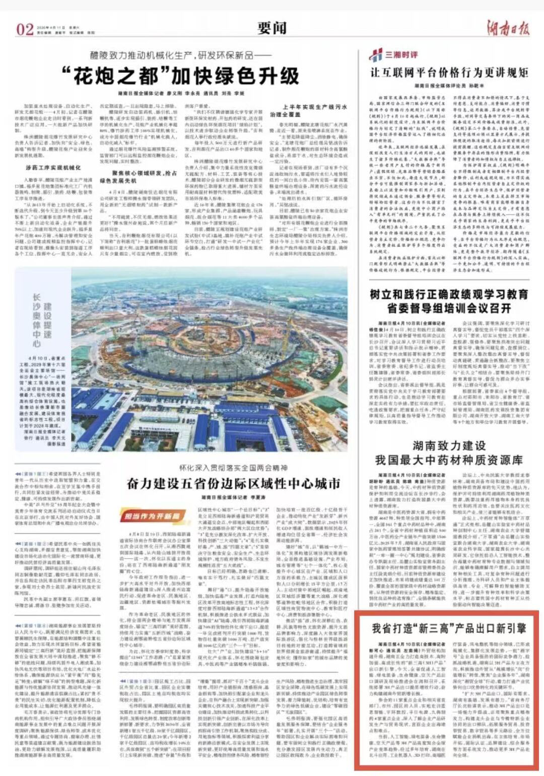 外贸结构加速升级,湖南正全力打造高技术、高附加值、高成长性的“新三高(3H)产品”出口新引擎。今天,全省促进人工智能、绿电装备、生命健康、空天产品出口调研及现场推进会在浏阳召开,系统部署3H产品出口提质增效行动,奋力构建湖南外贸新增长极。